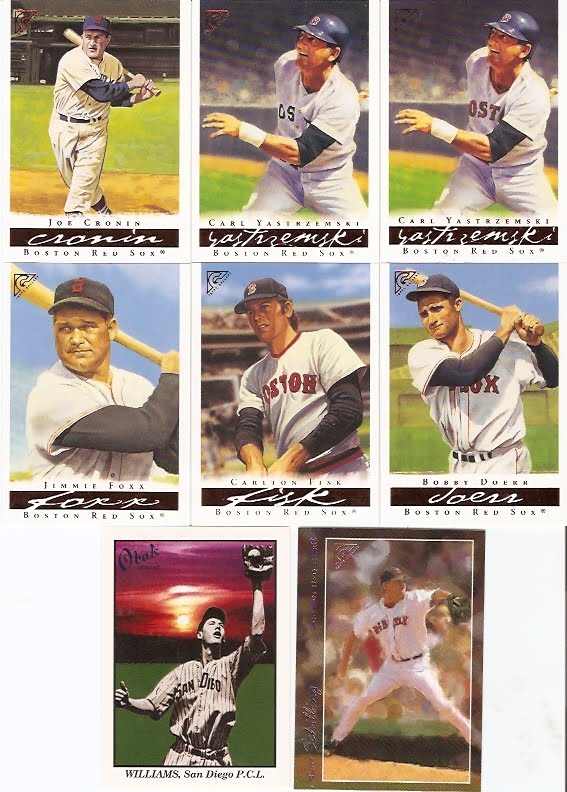 First is some Topps Gallery. It had an abundance of variation cards. Small subtle variations like the coloring of the lettering on Yaz's jersey. Beardy knocked a bunch of them off of my wantlist.